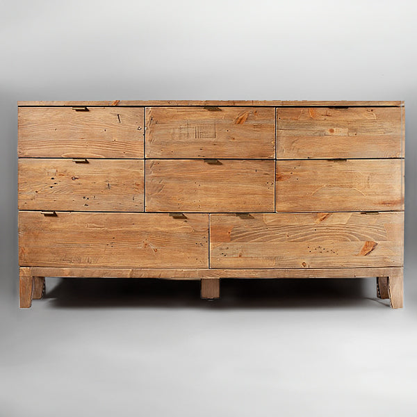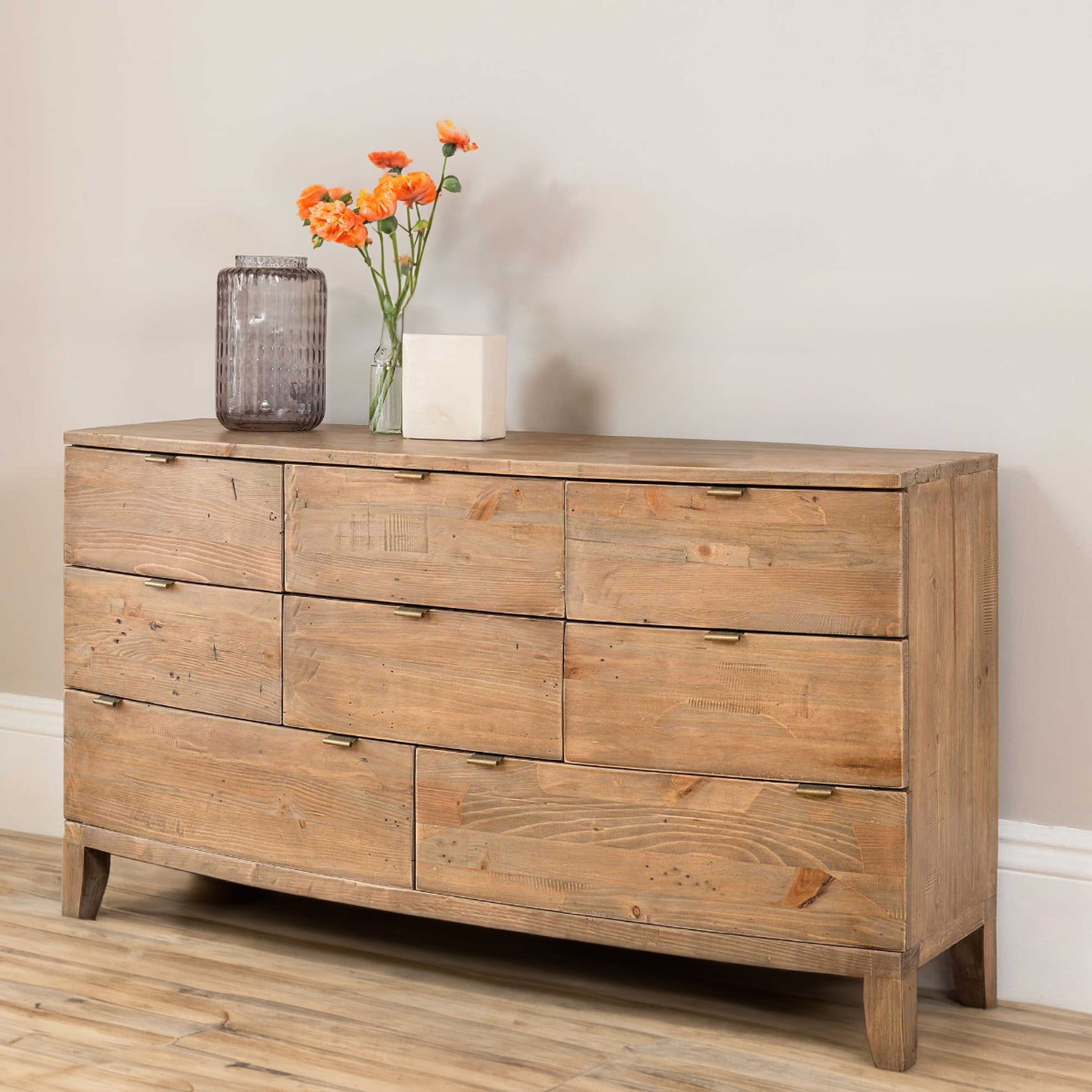 Create the perfect storage in your bedroom with this luxuriously large Winchester Large Rustic Chest of Drawers. Handcrafted using solid reclaimed wood which comes with natural markings and character. This stunning wooden chest of drawers comes with an elegantly curved front. A design that’s made to reflect the real beauty of this old characterful wood. This chest of drawers has 8 drawers for a convenient amount of extra storage.