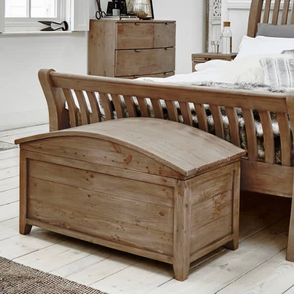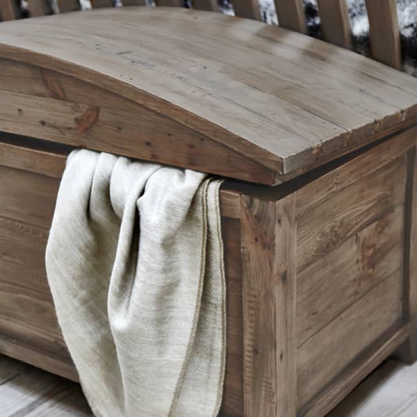 The Winchester Rustic Wood Blanket Chest is perfect for creating low-level storage space in your home. Handcrafted using 100% reclaimed wood, this solid wooden trunk comes with a beautifully curved top. This wooden blanket box comes with natural markings and old nail holes, making each storage trunk unique and one of kind. Traditionally used to hold blankets, throws and extra bedding, it is perfect for sitting at the end of the bed or as part of your living room.