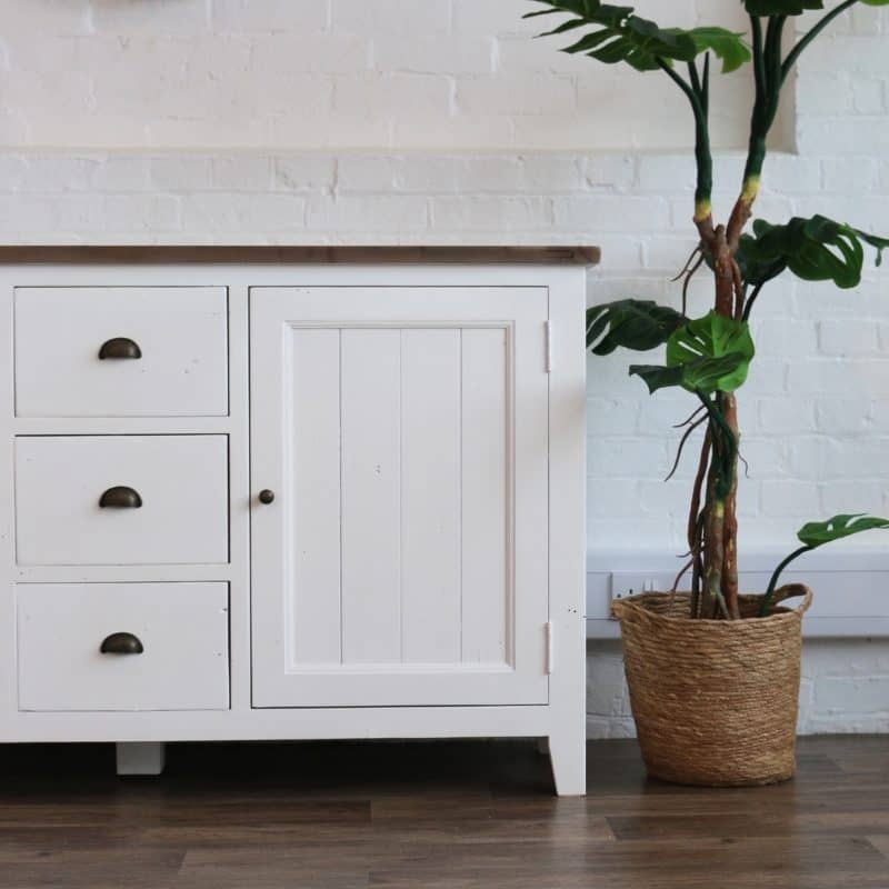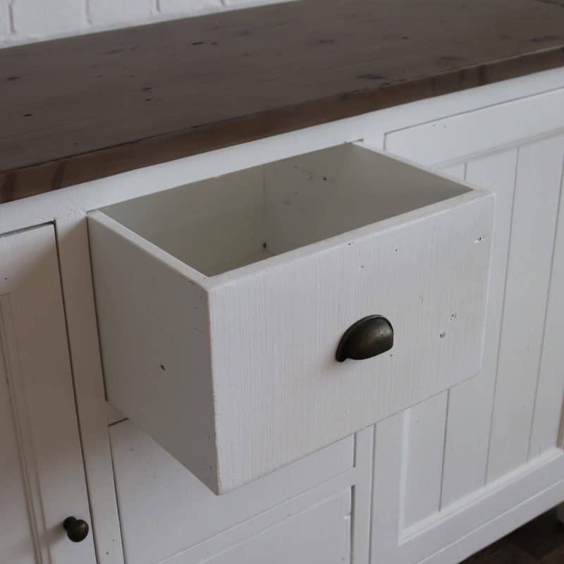 A beautiful white kitchen storage unit can add practicality and beauty in kitchens both large and small, not to mention in other parts of the home. The elegant Worcester Large White Wooden Sideboard looks utterly delightful, and it offers plenty of space for all your needs. This white sideboard has drawers and cabinet doors for everything from cutlery and crockery to tableware and towels. Thanks to the exceptional build quality, this is a high-quality reclaimed furniture wood sideboard that features natural markings from its previous use.