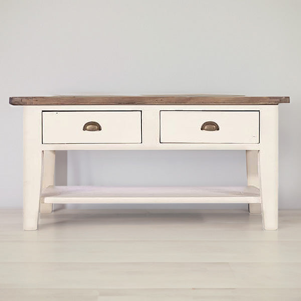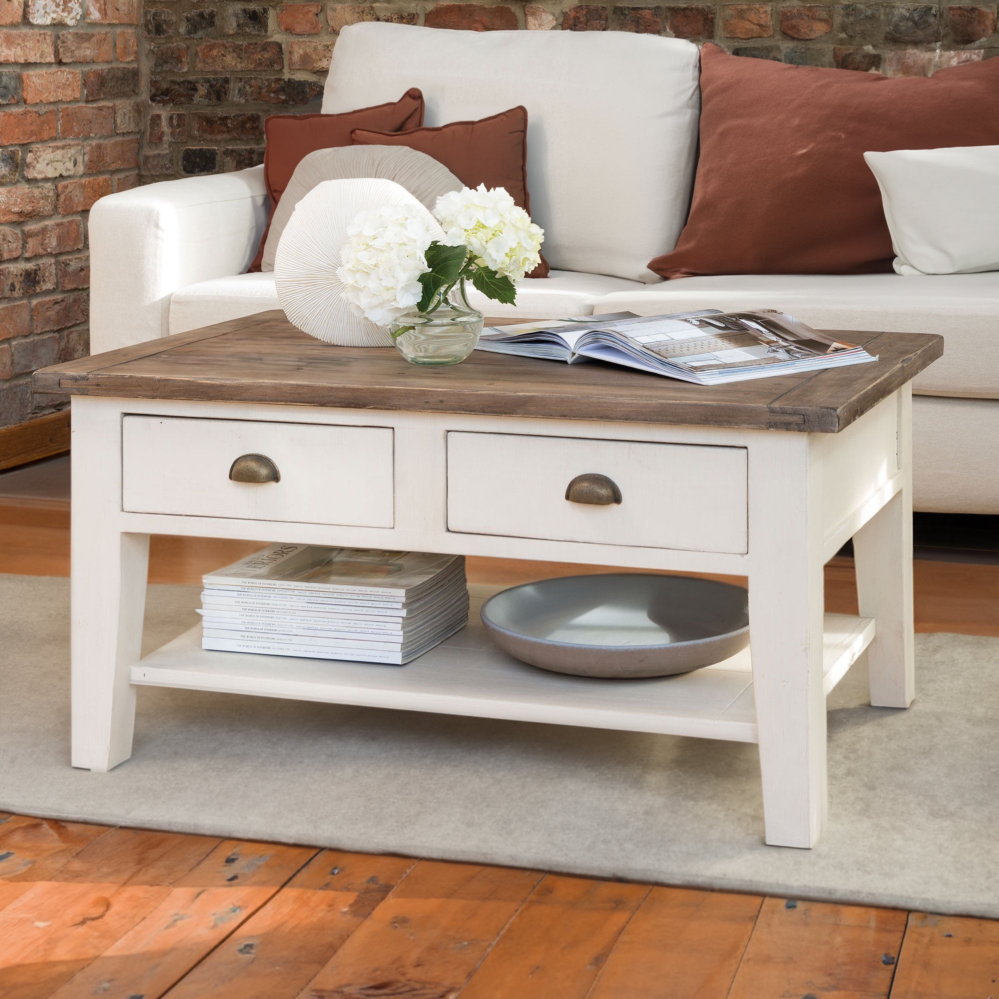 For a luxurious rustic white wooden coffee table, the Worcester Reclaimed Wood Coffee Table is perfect. With two drawers and a shelf, this solid wooden coffee table comes is perfect for giving your living room a little extra storage, helping to keep the tabletop clear from clutter. Handcrafted by skilled artisans, the white coffee table is made using 100% FSC certified recycled wood, making every piece unique and special.
